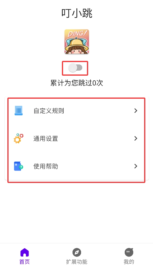 首页一键启动:点击开启按钮,系统将自动跳过开屏广告界面。