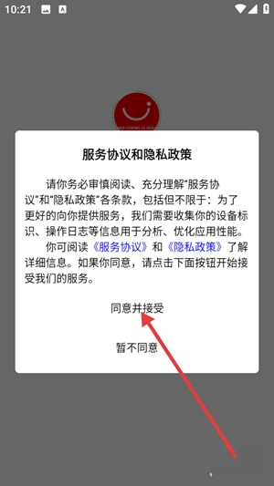 首次启动应用时,系统会呈现用户协议和隐私政策,建议您仔细阅读并同意相关条款后再继续使用,以此确保您对个人信息使用情况的知情权。