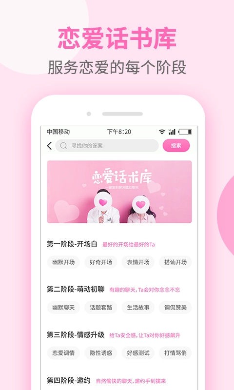 不知道该怎么和你暗恋的那个她对话?搜一搜,这里有多种场景、全方位的内容,等你来发现。