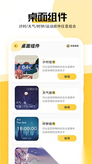 只需挑选自己心仪的桌面小组件,再点击【编辑】按钮就能进入组件编辑页面。