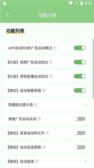 绿去广告免费版,绿去广告是一款超实用的手机广告跳过工具,它具备强大的自动广告识别功能,能有效屏蔽开屏广告和弹窗广告,还支持跳过视频开头的广告,有需要的朋友不妨试试!