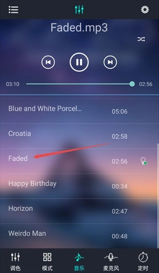 用户可以在界面看到很多音乐,选择一个音乐;