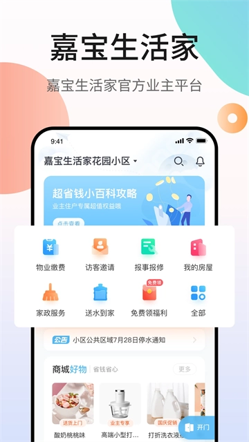 嘉宝生活家安卓版,这款应用以社区物业服务为核心,面向小区住户及周边区域构建社区O2O电商生态。除了基础的物业服务功能外,还整合了物业增值服务模块、邻里互动平台与电商交易系统,致力于为用户打造集便捷物业服务、社区交流空间与周边商圈服务于一体的综合体验。