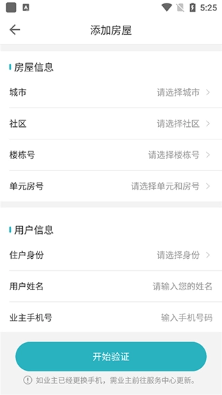 您只需输入房屋相关信息,像所在城市、具体社区、楼栋编号、单元及房号,再填写用户信息,点击“开始验证”按钮。待验证通过后,就能完成绑定操作了。