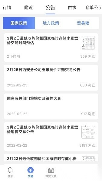 粮食供求信息:用户能在这里发布自己的供应或求购信息,方便在平台上找寻潜在的交易伙伴。