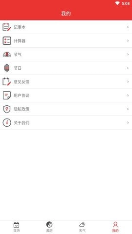 万年历的黄道吉日界面设计简洁,没有冗余元素,充分凸显了中国风特色,致力于打造优质且准确的中国日历。