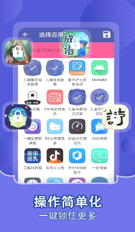 儿童锁家长助手中,家长可以通过这款严格控制孩子使用手机的频率,锁定大部分应用,防止孩子过早上网。该软件可以自动阻止儿童的配置文件,阻止儿童打电话或发送文本(短信),阻止儿童浏览互联网,进行应用内购买等。减少孩子利用家长忽视的空隙,在软件中乱买乱花虚拟物品,从而保护家长的血汗钱!还原孩子健康成长的自然环境。感兴趣的朋友不要错过。