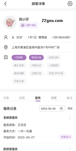 顾客详情:服务记录、标签、提醒、个人信息等