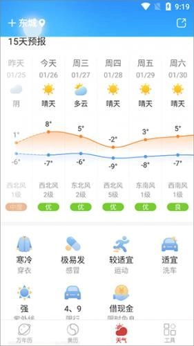 4、点击天气,你还可看到今天的天气、体感等,以及还可以看到最近15天天气情况;