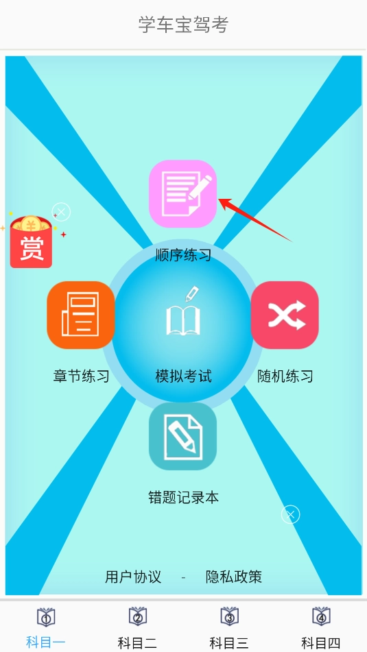 打开,可在科目一页面,点击顺序练习。