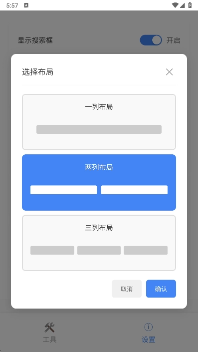 打开云喵工具箱,找到并进入设置界面,选择“更改布局”选项。