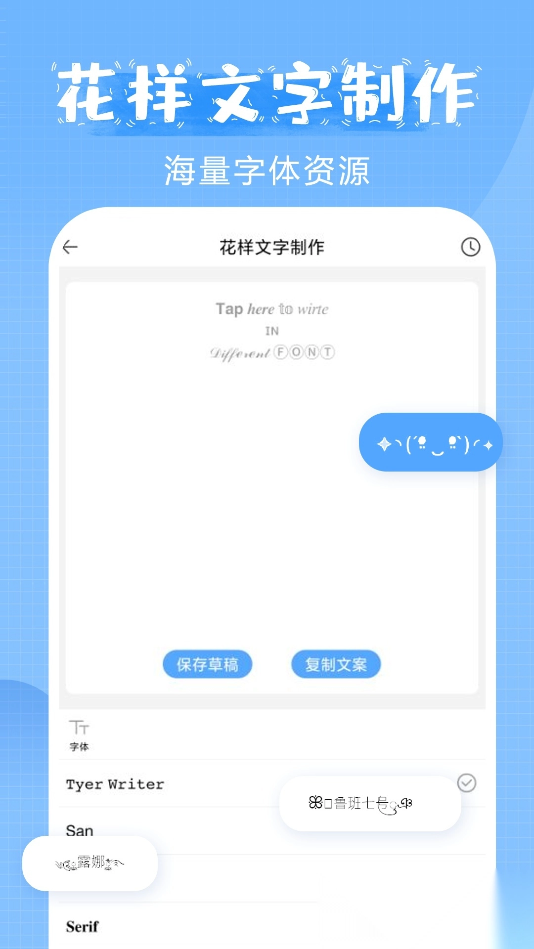 应用内提供现成的文案模板供用户选用制作,用户所见到的任何字体样式都能快速生成。