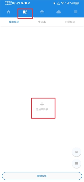 在单词界面里,你还能把自己的课本添加进来学习单词,只需点击“添加单词书”按钮就行。