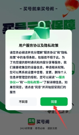 首次使用时,请仔细阅读平台的服务条款和隐私政策,确认无误后点击同意按钮,即可进入应用。