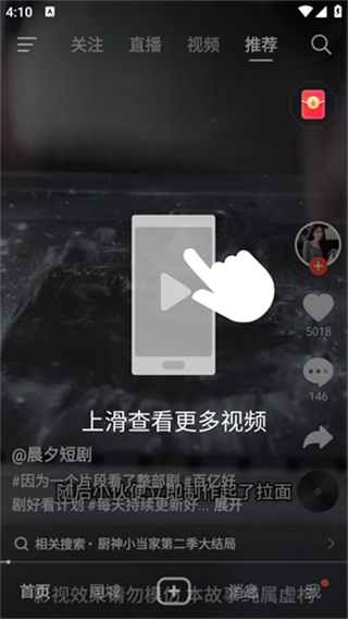 进入软件通过滑动方式观看视频。