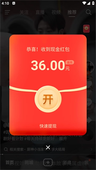 可以在线领取现金红包。