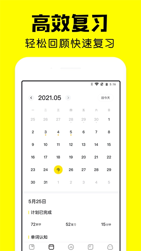 复习系统会借助遗忘曲线算法,智能规划已掌握单词的复习时段。