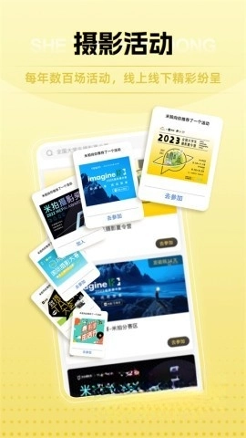 【精彩纷呈的活动】我们会定期开展各类摄影征稿赛事,参与者有机会赢取现金、流量扶持、摄影器材等丰厚奖品。另外,每年还会举办夏令营、影像节、青年摄影展等特色活动,助力大家打造别具一格的摄影生活方式。