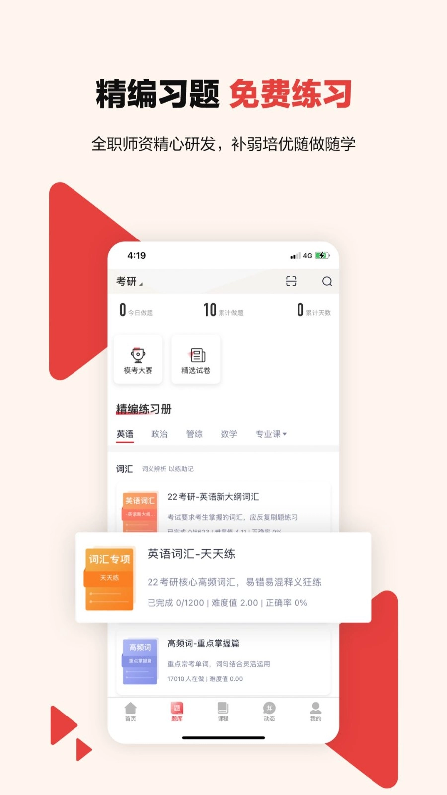 优质的学习资源:提供优质的考研学习资源,包括课程、测试、答疑等。