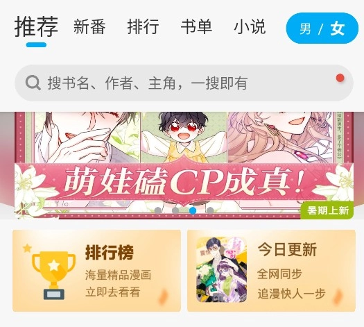 书城里有不少精彩的漫画,另外还有排行榜和今日最新更新的内容,要是不知道看什么,不妨去这两个板块瞧瞧。