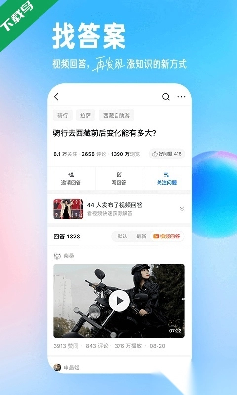 知乎,知乎是一款专注于在线社交与知识分享的软件,它通过实时语音、图文讲解和视频直播等多种形式,直观高效地帮助用户解答各类疑问。软件营造了专业而友好的社区氛围,吸引了众多科技、商业与文化领域的创作者,他们持续分享优质内容,共同构建起一个充满价值的人际交流网络。