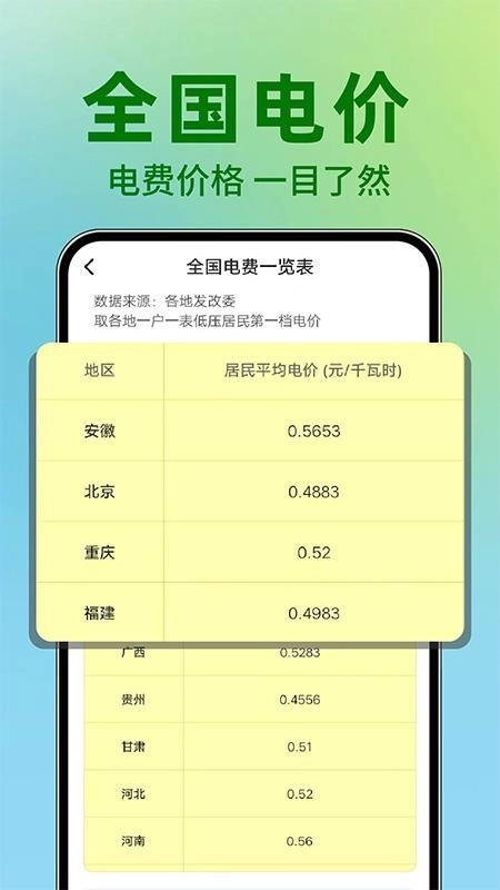 还可对全国的电价进行查询,方便用户掌握不同地区的价格。