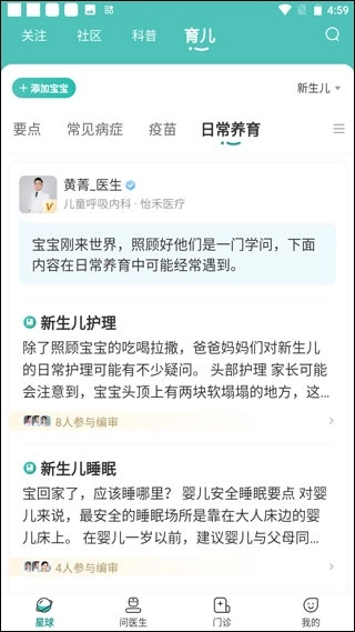 日常养育模块,里面有很多专业问答。