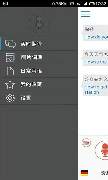 用手指在屏幕右侧向左滑动,就能呼出选项菜单。不过每次使用其他页面都得先调出这个导航栏,缺少直接切换页面的选项,操作上稍微有点繁琐,习惯了就好。从下方可以看到,除了翻译功能外,还有很多其他实用功能。